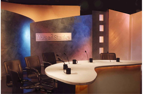 Modular set pieces were arranged in a small photo studio to create the look of offices and changed after each interview.