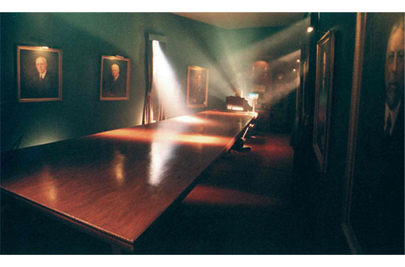 Real tile work and faux finishes create a realistic Roman bath for a magazine photo shoot.