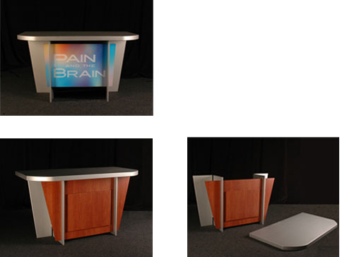 Finished in brushed silver and cherry laminate